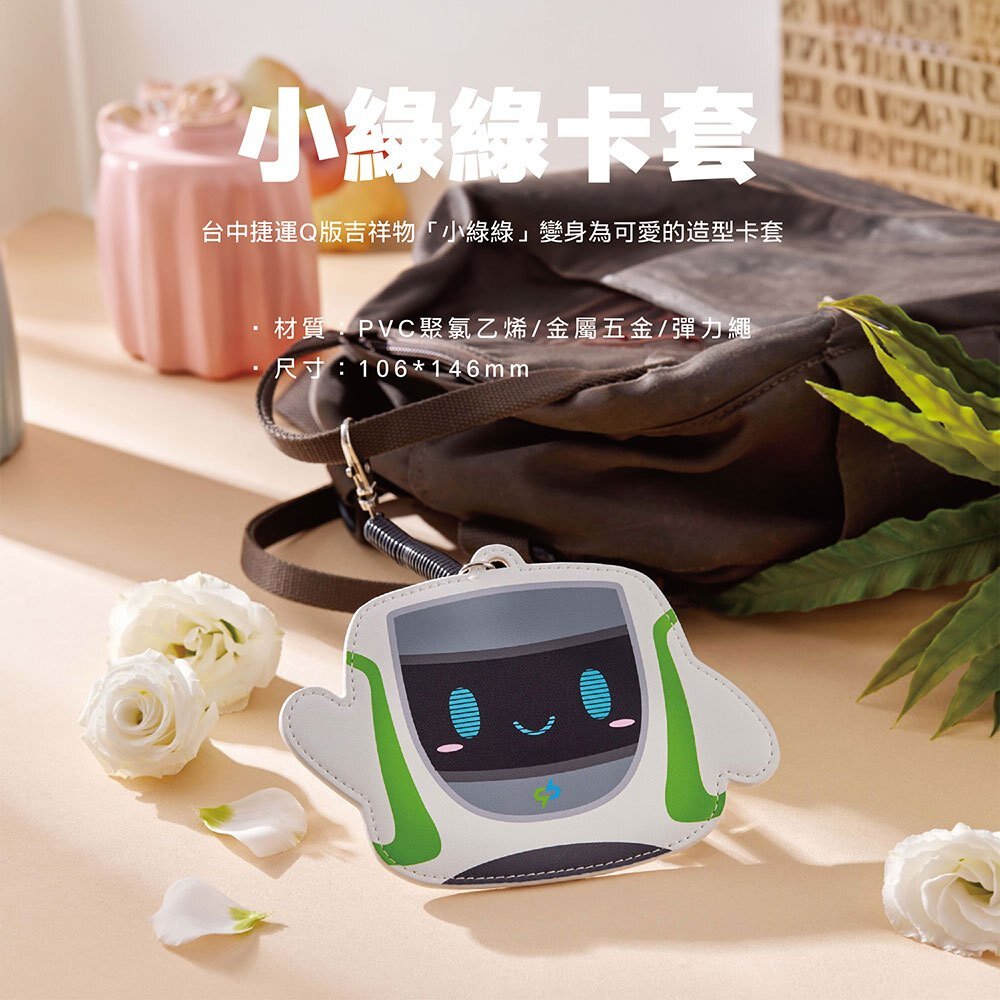 台中捷運Q版吉祥物「小綠綠」變身為可愛的造型卡套,可放置電子票證、工作證或學生證等,方便攜帶與吊掛!