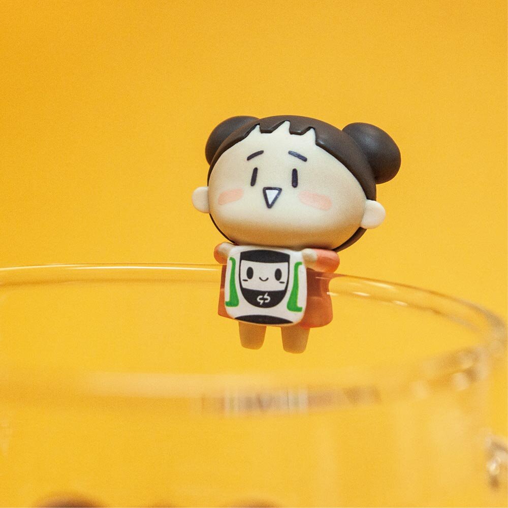 台中捷運Q版吉祥物「小綠綠」與知名插畫家「啾啾妹」化身為杯緣子,放在杯緣上,原本簡單的杯子增添色彩!