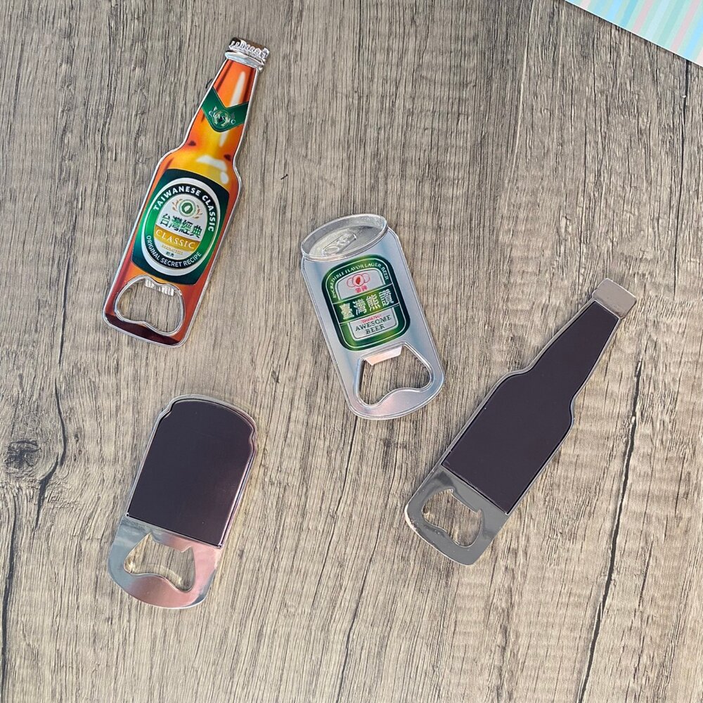 造型鋁箔開瓶器冰箱貼 【尺寸】 鋁罐款:約4 x 8cm 酒瓶款:約3.4 x 12.3 cm 【材質】金屬、鋁箔、磁鐵 【產地】台灣 ▶ 每台電腦螢幕因設定及廠牌不同,會影響顯示器的顏色呈現,商品照片難免會有顏色差異,出貨以實際商品顏色為主。