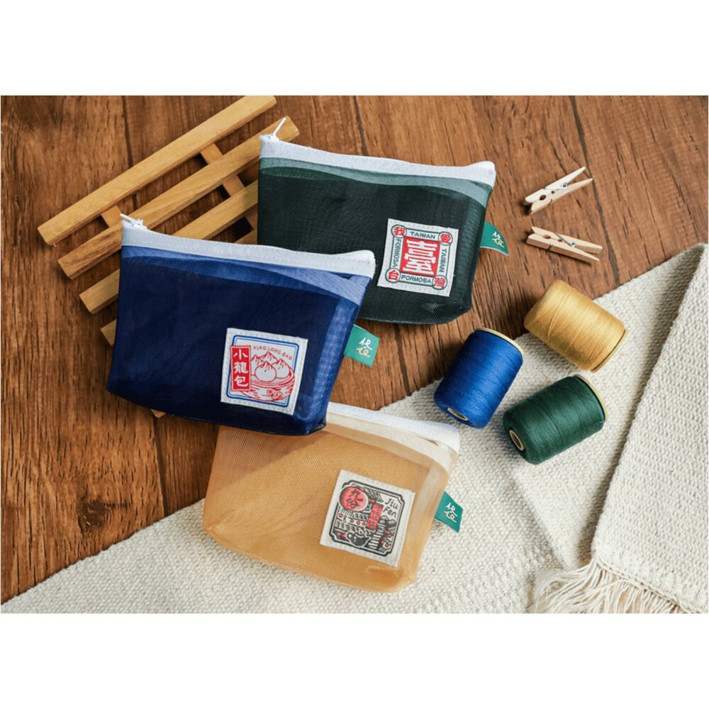 -使用精美復古織標搭配台灣代表性的「茄芷袋」布料,重新編織成迷你尺寸的隨身小包,適合收納各式小物,將最經典的台灣元素隨身帶走!