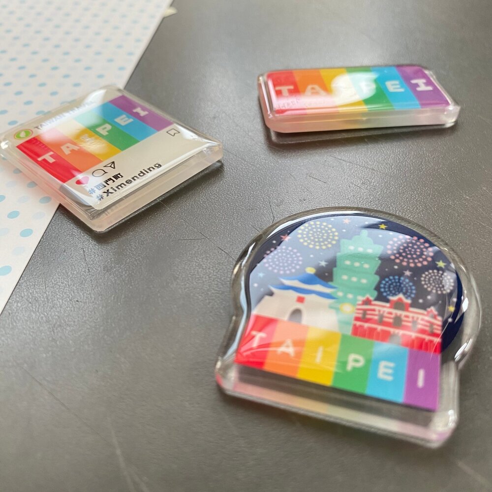 |商品規格| 品名:滴膠壓克力冰箱貼 材質:壓克力、金屬 尺寸: 彩虹台北 5*2.9 cm IG風彩紅台北 3.6*4.6 cm 水晶球彩虹台北 4.1*4.4 cm 產地:台灣設計/製造 ※商品因拍攝、網頁、螢幕顯示的關係會產生色差,請以收到的實際商品為主!