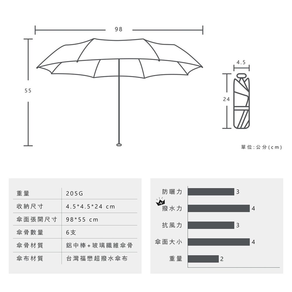材 質:鋁中棒、玻璃纖維傘骨、台灣福懋潑水布