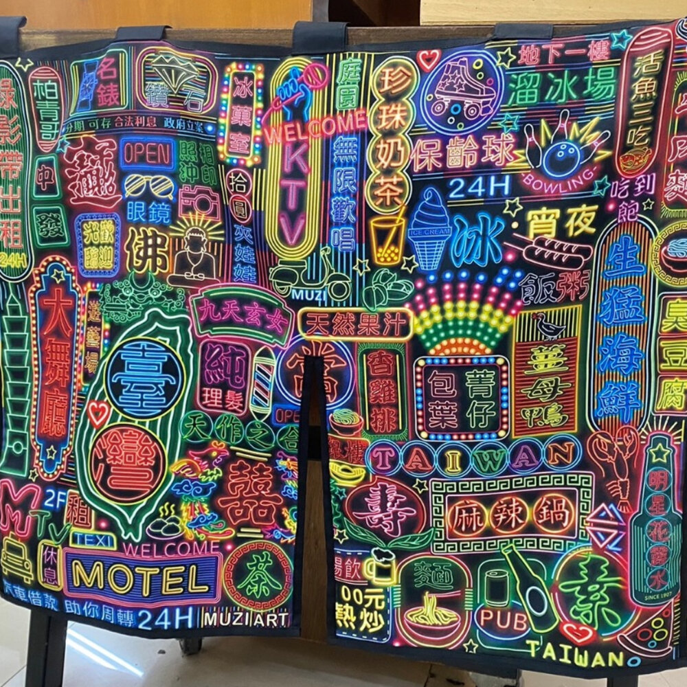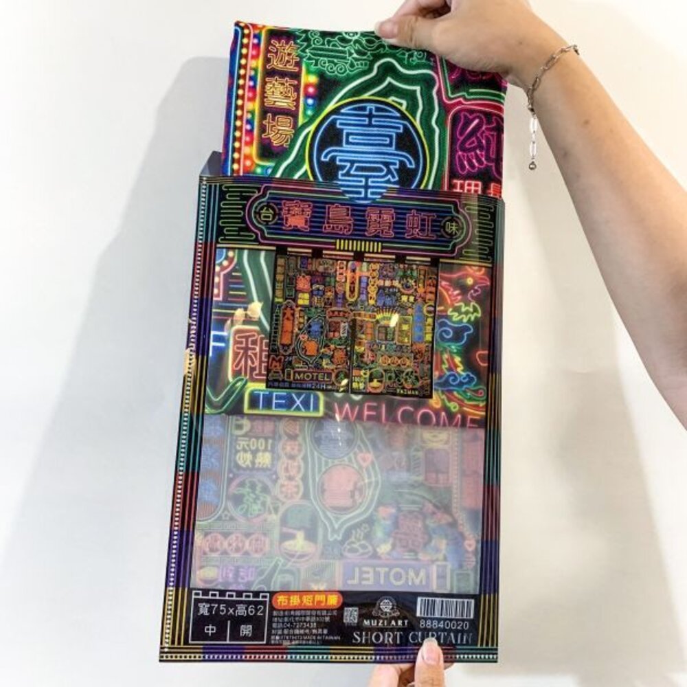 ●閃耀絢麗的霓虹燈,五花八門的店家招牌在夜晚中光亮,顯現出復古的街頭特色,展現台灣獨具一格的街景文化● 品 名:寶島霓虹短門簾(中開式) 材 質:100%聚酯纖維 Polyester/熱昇華 尺 寸:寬度 75 X 長度 62 公分 製 造:台灣 ※商品因拍攝、網頁、螢幕顯示的關係產生色差,請以實際商品為主,若對顏色要求較高的顧客,請謹慎購買。