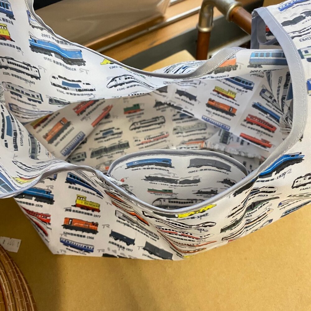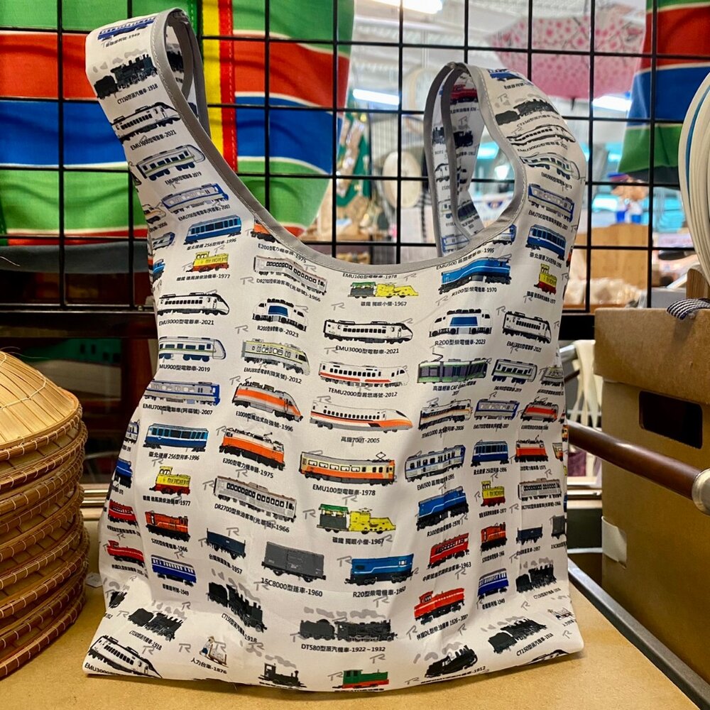 品 名:台灣火車圖鑑環保購物袋 材 質:聚酯纖維 尺 寸:23×41±5公分 重 量:23±5克 製 造:台灣 ※商品因拍攝、網頁、螢幕顯示的關係產生色差,請以實際商品為主,若對顏色要求較高的顧客,請謹慎購買。