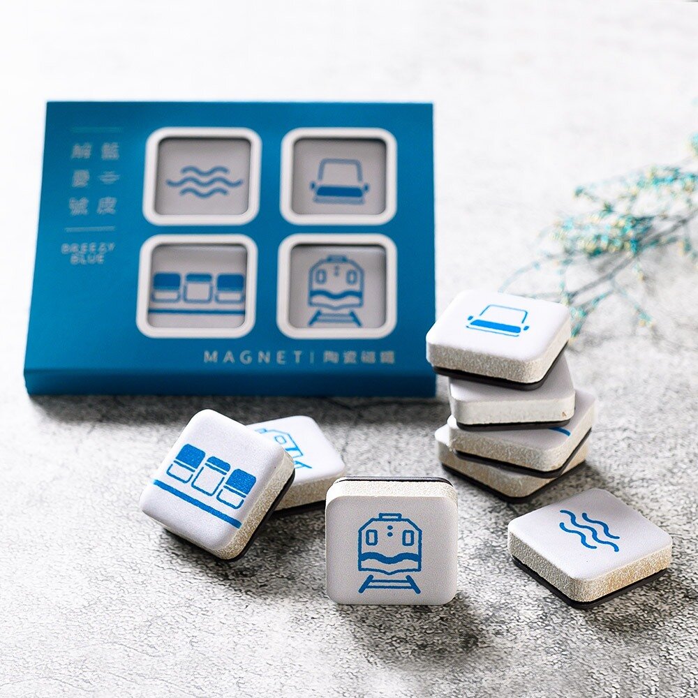 Breezy Blue 陶瓷磁鐵 4款組 磁磚磁鐵 冰箱貼 藍皮意象 官方授權銷售商店 TR台灣鐵道
