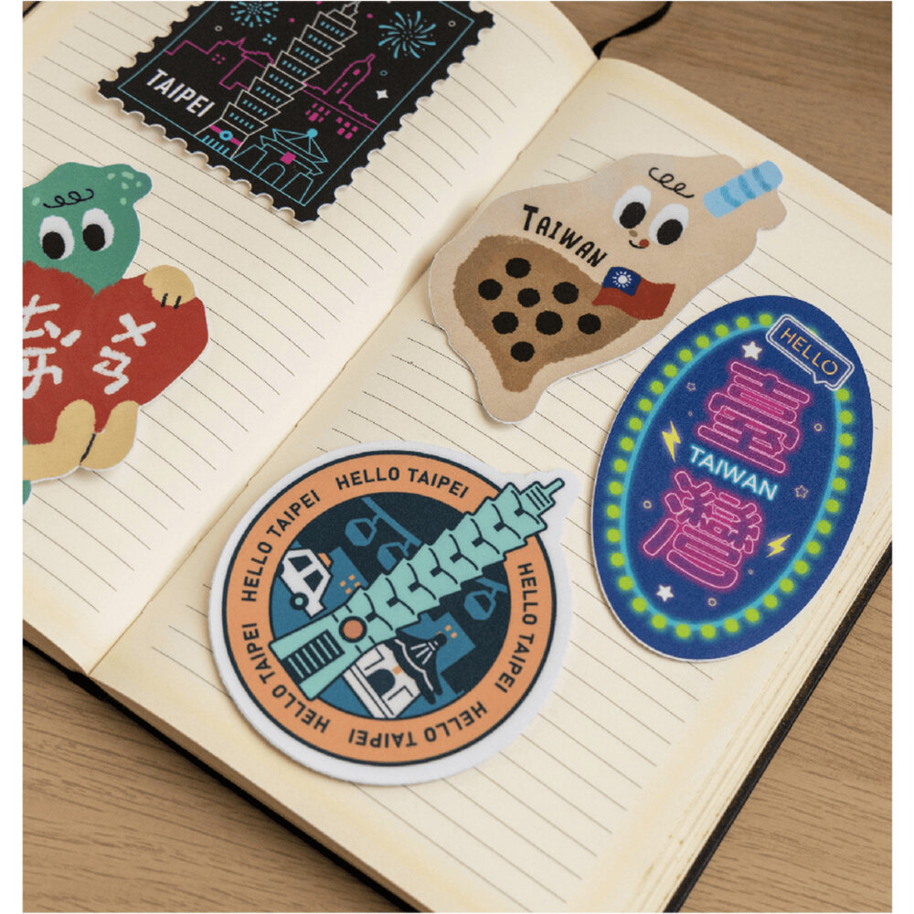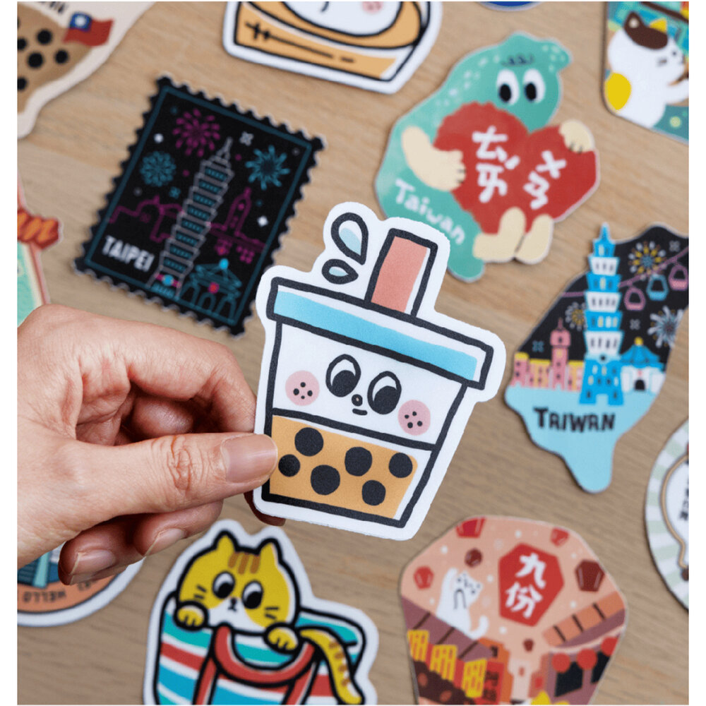 以台灣意象、代表景點及小吃為主題繪製的PVC大貼紙