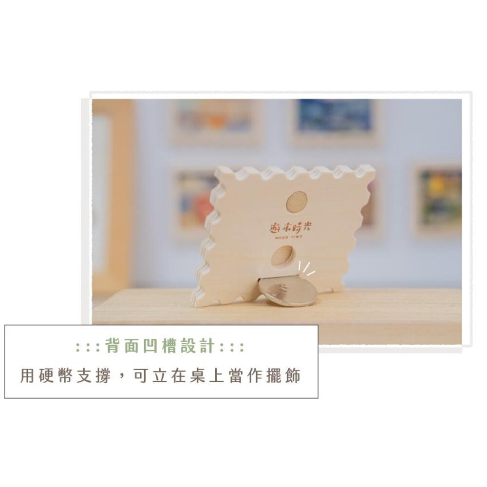● 背面凹槽設計:用硬幣支撐,可立在桌上當作擺飾