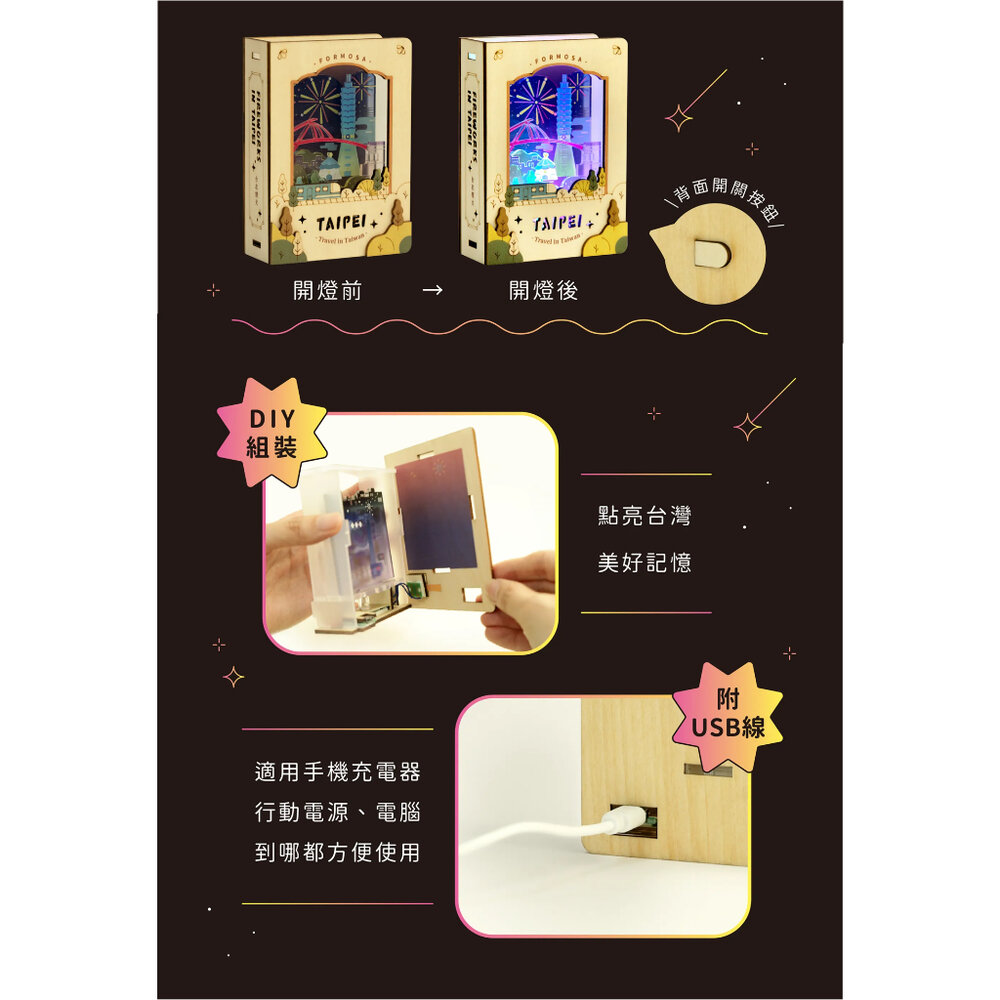 材質:木板、壓克力、燈板、USB線、泡棉膠