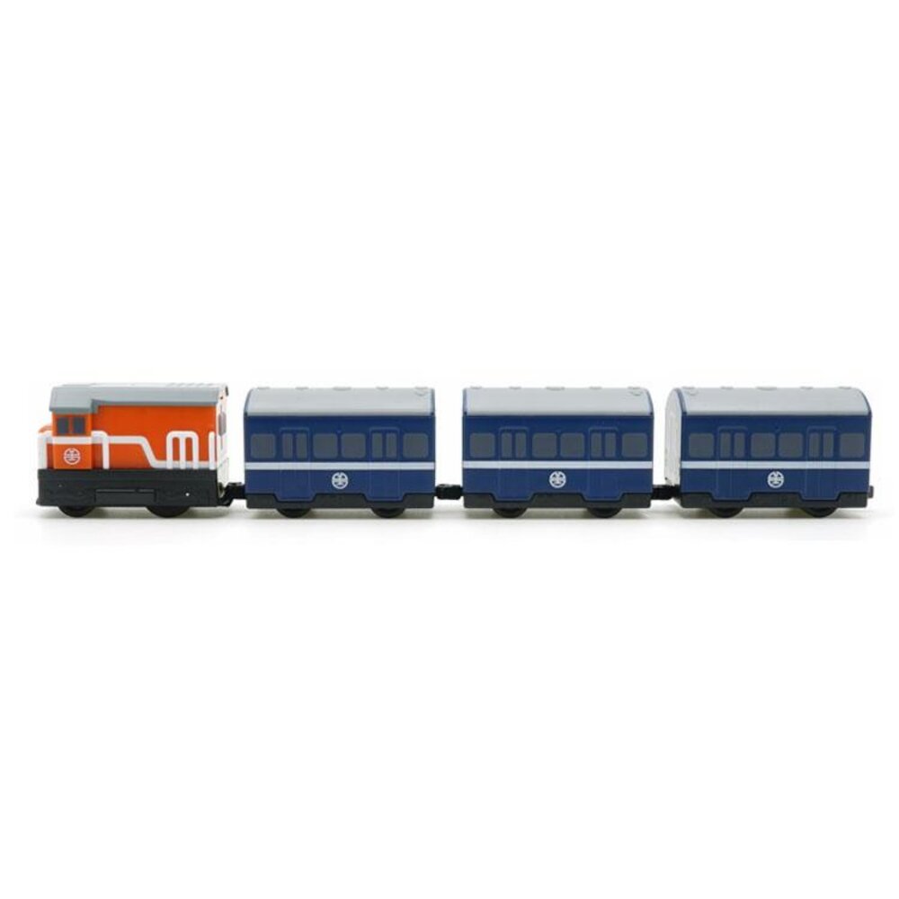 台鐵普通列車 R100型(橘) 藍皮列車 鐵支路4節迴力小列車 迴力車 火車玩具 QV007T3 TR台灣鐵道-圖片-1