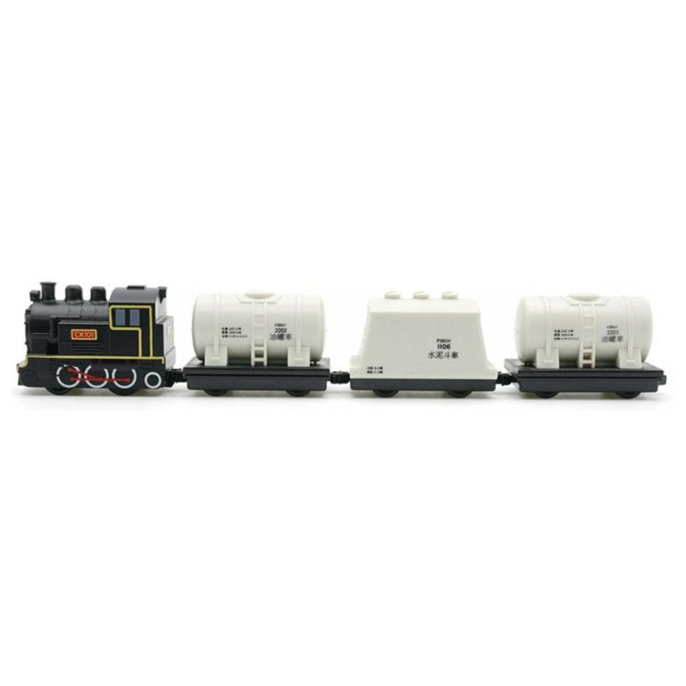 台鐵蒸汽火車CK101水泥油罐列車鐵支路4節迴力小列車迴力車火車玩具壓克力盒裝QV062T3TR台灣鐵道