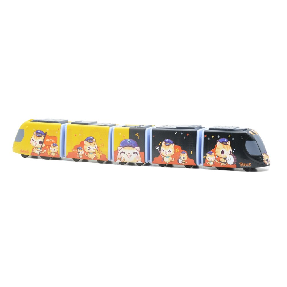 計,搭配融入市景地標的線條背景 , 完整展現城市文化與藝術的融合 . 車頭的蜜柑造型穿越於高雄龍貓隧道中 , 宛如從童話世界行駛出來 .